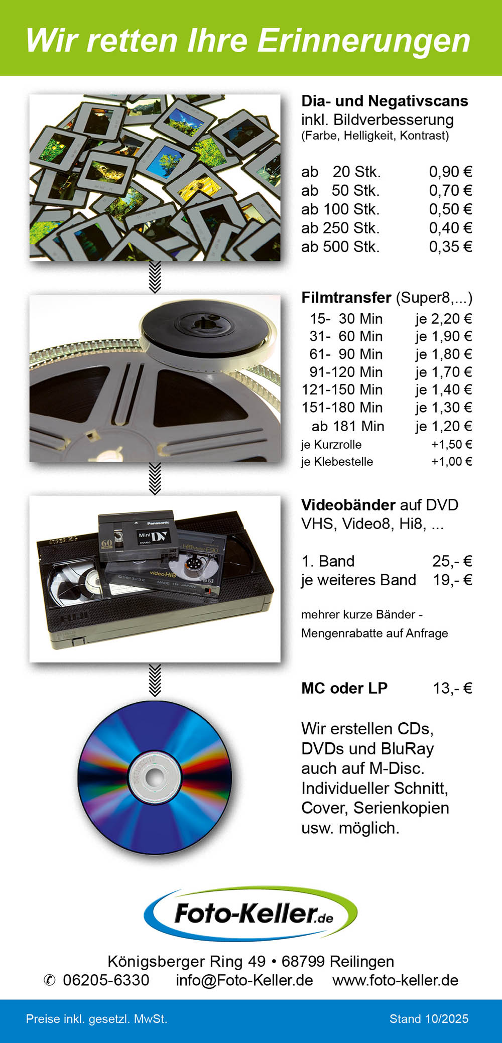 Wir überspielen/scannen diese mit größter Sorgfalt auf CD, DVD, USB-Stick oder fast jedes andere Medium.