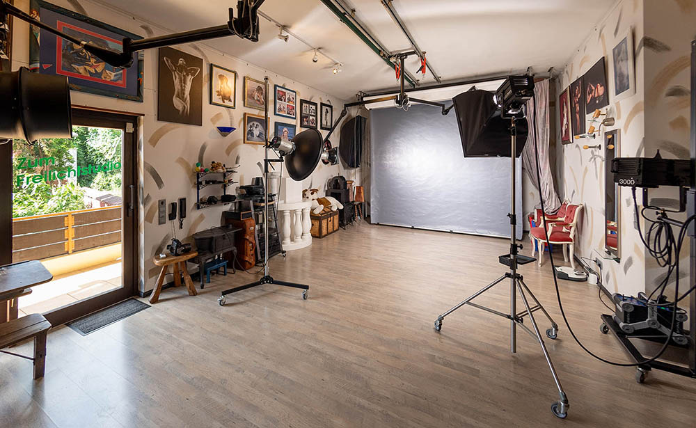 Professionelle Studioausstattung mit originalen 80er-Requisiten, Antiquitäten und modernen Requisiten, Speedlights vor Ort und die Nikon Spiegelreflex – entscheidend ist das Auge und die Erfahrung dahinter. Fotografie bedeutet wörtlich „Zeichnen mit Licht“ – und wie der Koch, der auch im einfachsten Topf eine köstliche Soße zaubert, zählt beim Fotografen vor allem das handwerkliche Können und das Auge für den richtigen Moment.